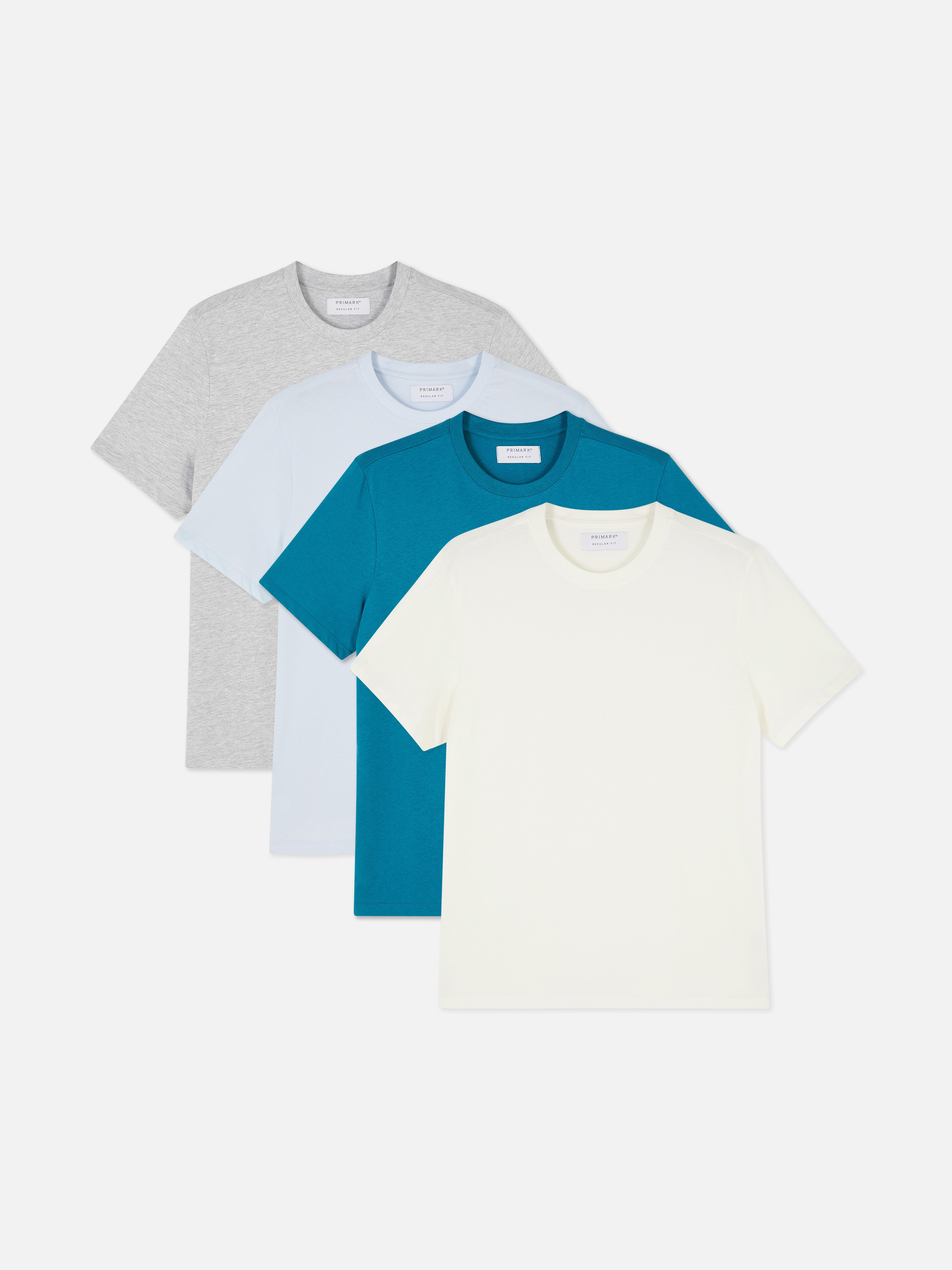 This set of four short-sleeve tees is a must-have for easy, everyday dressing. Designed with classic round necklines, they come in a mix of versatile colours—grey, light blue, teal, and cream—making them a great addition to any casual wardrobe. Wear them on their own or layer under a jacket for effortless style.
