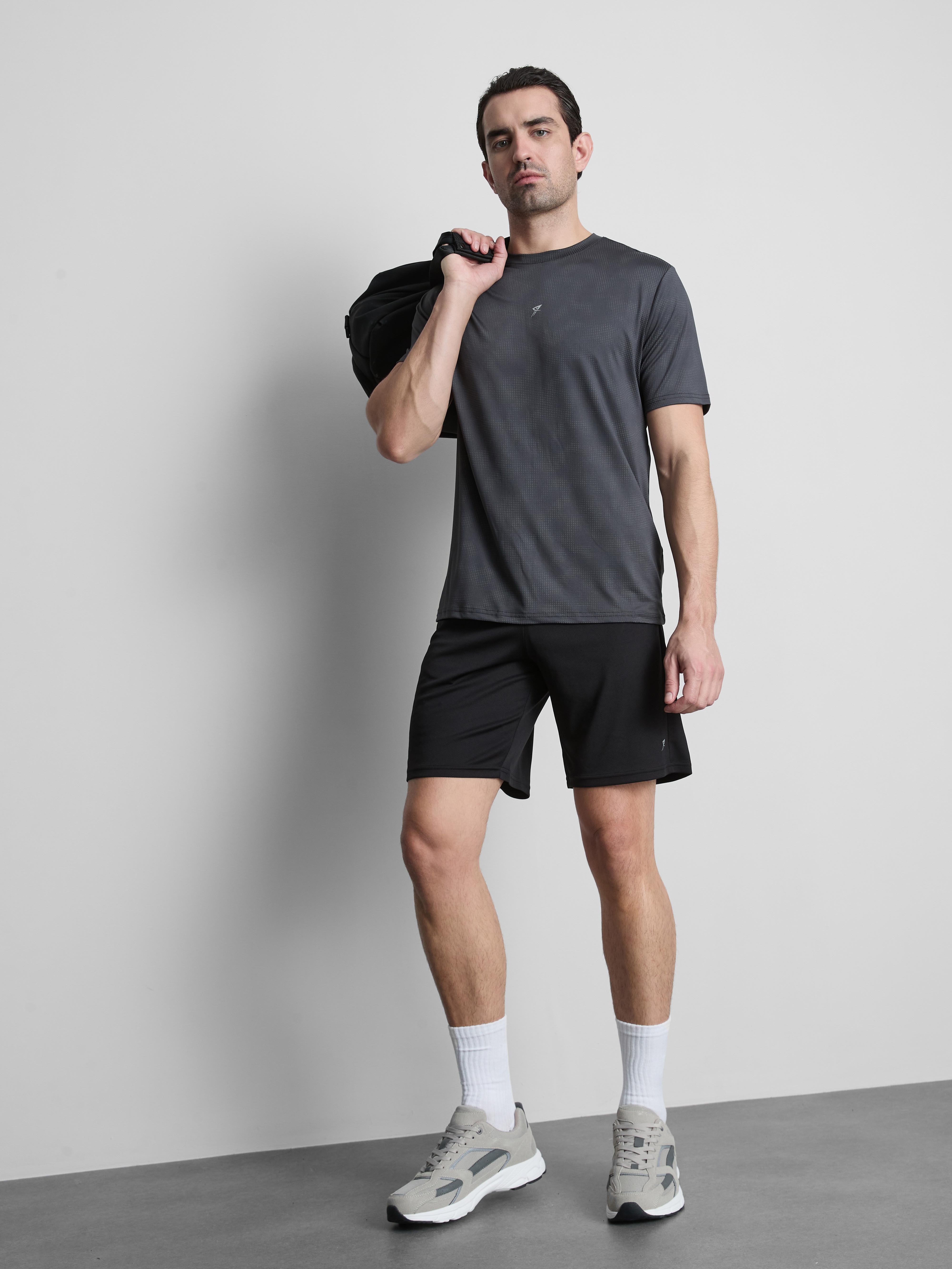 Neckline: Crew Sleeve Length: Short sleeve Model Size: M Model Height: 187 cm Fastening: None Pattern: Solid colour Fire Safety: WARNING! Keep away from fire Country of Origin: China Body: Polyester 95%; Elastane 5%