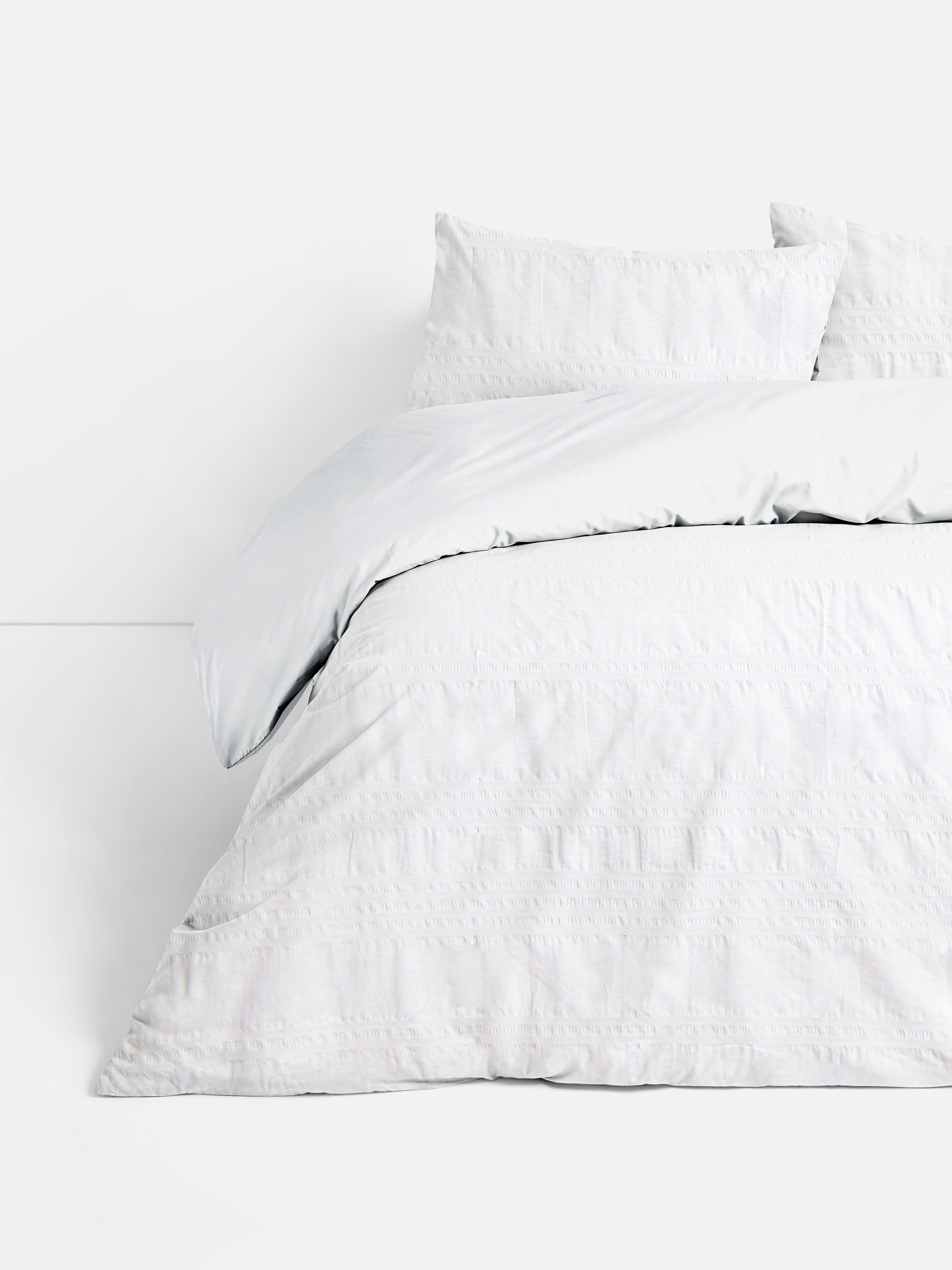 Duvet Size: Double Pattern: Solid colour Fabric Finish: Seersucker Dimensions: 200cm x 200cm x 0cm Reversible Country of Origin: Pakistan Body: Cotton 50%; Polyester 50%