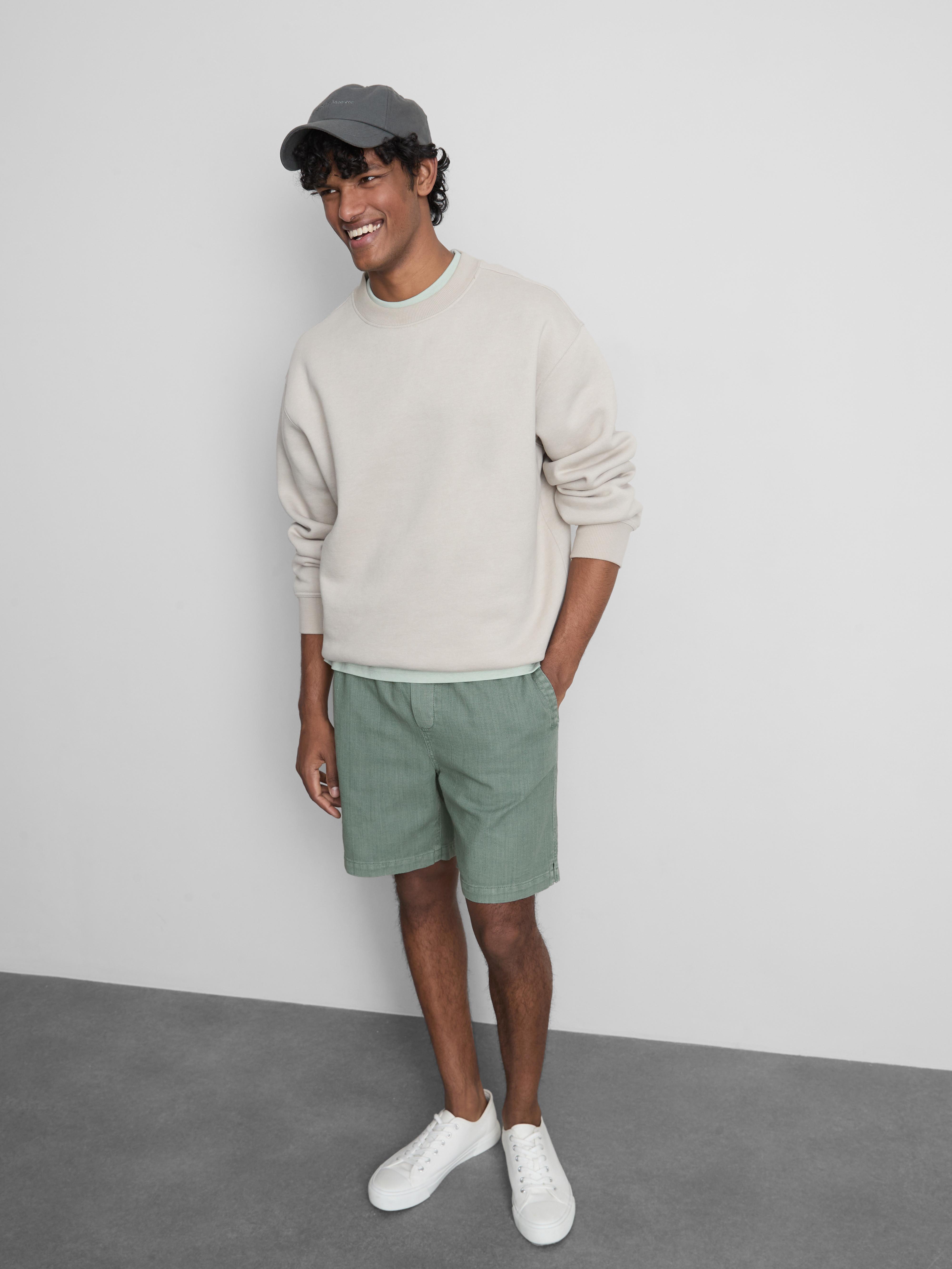 Fit: Regular Leg Length: Above the knee Model Size: M Model Height: 185 cm Fastening: Drawstring Pattern: Solid colour Country of Origin: Bangladesh Body: Cotton 100% Fabrication: Cotton