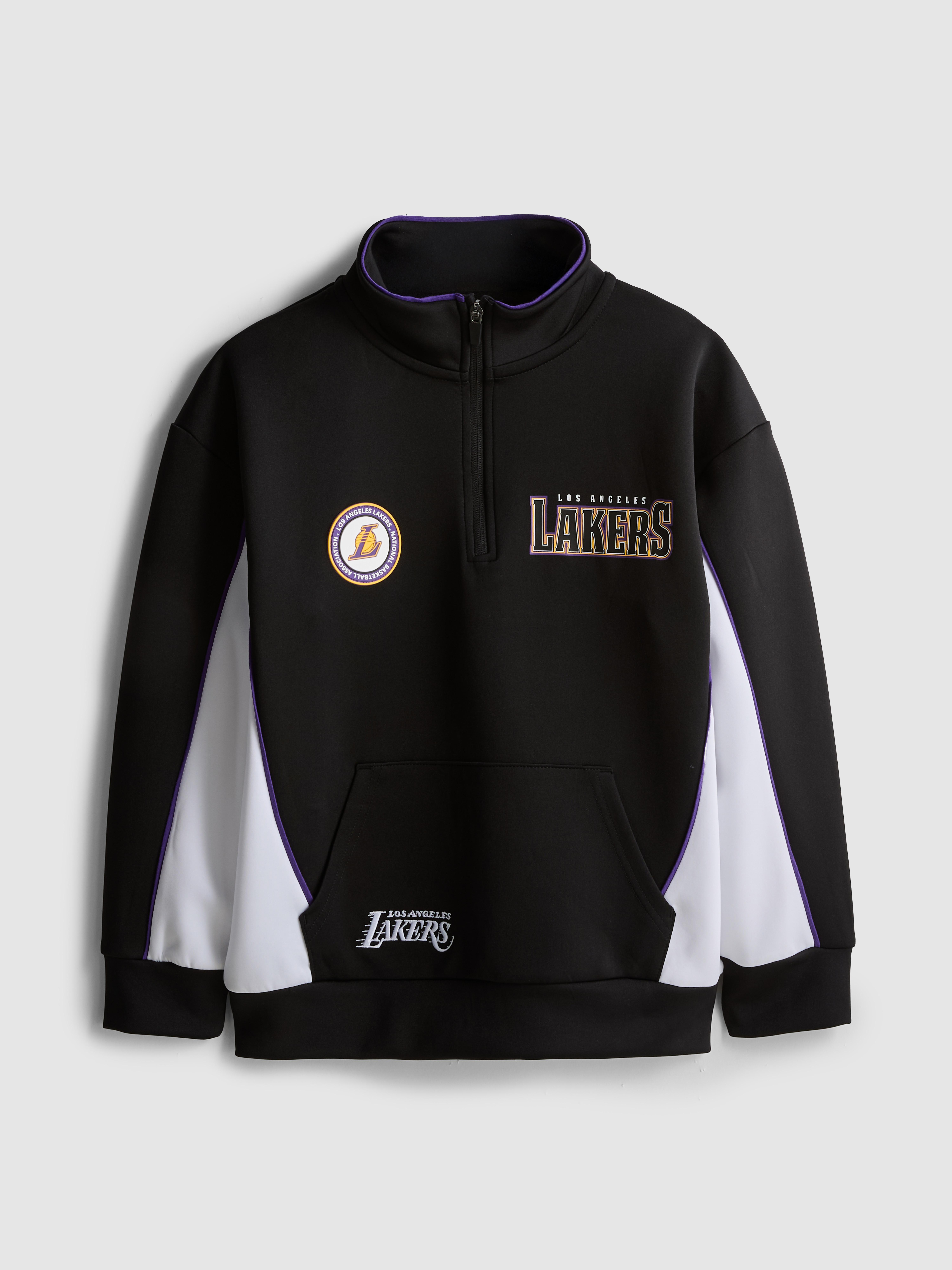 Característica: LA Lakers Decote: Gola alta Ajuste: Corte regular Comprimento da manga: Comprido Fixação: Sem capuz Padrão: Estampado Proteção contra incêndios: AVISO! Manter afastado do fogo País de origem: China Corpo: Poliéster 95%; Elastano 5%